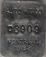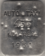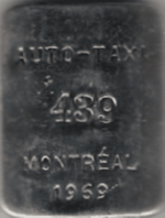 ![]() ![]() 1968 AUTO-TAXI BADGE AND LICENSE PLATE | ![]() ![]() 1969 AUTO-TAXI BADGE AND LICENSE PLATE |