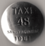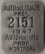 ![]() ![]() 1970 AUTO-TAXI BADGE AND LICENSE PLATE | ![]() ![]() 1971 AUTO-TAXI BADGE AND LICENSE PLATE |