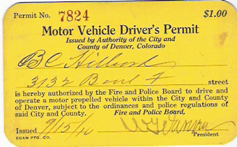![]() 1910 MOTOR VEHICLE DRIVER'S PERMIT | ![]() 1910 MOTOR VEHICLE DRIVER'S PERMIT |