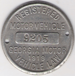 THE STATE OF GEORGIA USED DASHBOARD DISCS (RADIATOR SEALS) 1910-1928. THE UNDATED ONES WERE USED UNTIL 1914. THE UNOFFICIAL BREAKDOWN IS AS FOLLOWS: 191091-4400), 1911(4401-10,000), 1912(10,001-17,000), 1913(17,001-23.00).