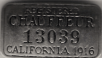 ![]() 1906 CALIFORNIA REGISTERED CHAUFFEUR | ![]() 1907 CALIFORNIA REGISTERED CHAUFFEUR |