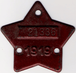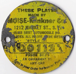 WERE USED 1905-1913. THE BREAKDOWN IS AS FOLLOWS:1905(1-2444), 1906(2445-4807), 1907(4808-7524), 1908(7525-9817), 1909(9818-11982), 1910(11983-15767), 1911(15768-20257), 1912(20258-26154), 1913(26155-31700+).THE 1932 AND 1933 BADGES ARE UNDATED. THE PHOTO IS A BUICK WITH 1914 LICENSE PLATES (64861).