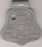 ![]() 1921 CALIFORNIA NON RESIDENT LICENSE | ![]() 1923 CALIFORNIA NON RESIDENT PERMIT | ![]() 1928 CALIFORNIA NON RESIDENT PERMIT |