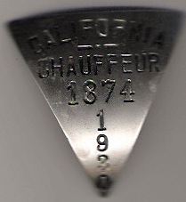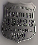 ![]() 1921 CALIFORNIA REGISTERED CHAUFFEUR | ![]() 1922 CALIFORNIA REGISTERED CHAUFFEUR |