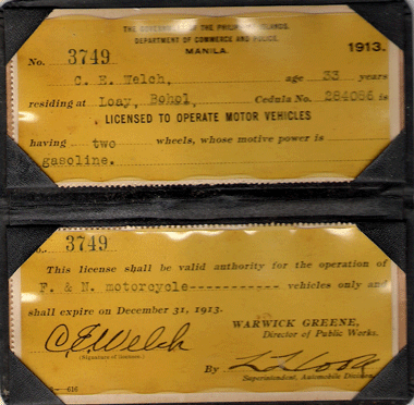 1913 PHILIPPINES MOTORCYCLE LICENSE |