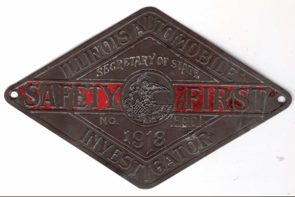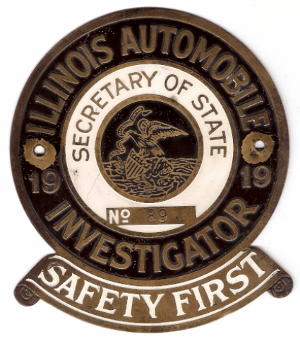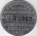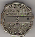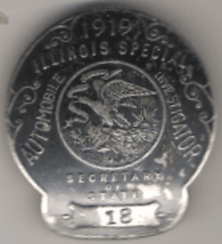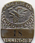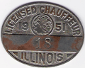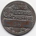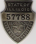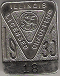 ILLINOIS CHAUFFEUR BADGES WERE USED 1907-1851. THE FIRST