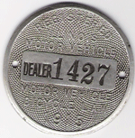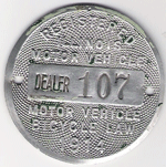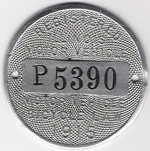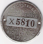 THREE WERE UNDATED. I AM NOT SURE OF THE DATES OF USE. THE BADGE WITH THE BLACK LETTERS AND NUMBERS MAY HAVE BEEN USED FIRST. THE FIRST DATED BADGE IS 1912. I HAVE A 1912 WITH THE MATCHING PAPER CHAUFFEUR LICENSE. I WOULD LIKE TO KNOW MORE ABOUT THE EARLIER ONES. THERE ARE THREE VARIETIES OF THE 1932 BADGE.THE STATE MAY HAVE USED DIFFERENT MANUFACTURERS. AS FOR THE PAIR OF 1926 BADGES, ONE MAY HAVE BEEN A REPLACEMENT BADGE. THE PHOTOGRAPH IS OF "BUFFALO BILL CODY" IN A CAR WITH 1909 ILLINOIS LICENSE PLATES.