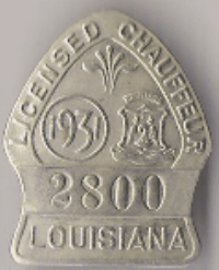 ![]() 1934 LOUISIANA LICENSED CHAUFFEUR | ![]() 1935 LOUISIANA LICENSED CHAUFFEUR |