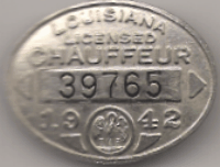 ![]() 1941 LOUISIANA LICENSED CHAUFFEUR | ![]() 1942 LOUISIANA LICENSED CHAUFFEUR |
