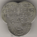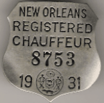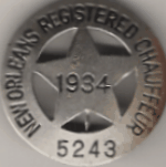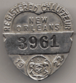 THERE ARE TWO SETS OF NEW ORLEANS BADGES. REGISTERED CHAUFFEUR, AND REGISTERED DRIVER.