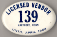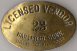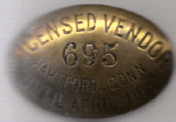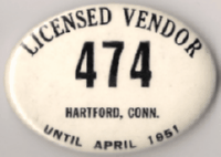 ![]() HARTFORD, CONNECTICUT 1911 STREET SALES PERMIT | ![]() HARTFORD, CONNECTICUT 1921/22 LICENSED VENDOR |