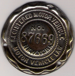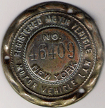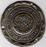 EARLY LICENSE PLATES REGISTRATIONS AND DASHBOARD DISCS (RADIATOR SEALS)