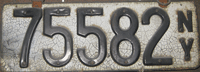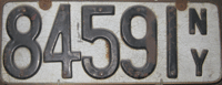 NEW YORK STATE REQUIRED AUTOMOBILE REGISTRATIONS STARTING IN 1901, THE COST WAS $1. THE REGISTRANT HAD TO MAKE HIS OWN LICENSE PLATE, WHICH WAS EITHER HIS INITIALS OR HIS HOUSE NUMBER. THE CERTIFICATES WERE USED UNTIL 1904 WHEN A DASHBOARD DISC WAS ISSUED BY THE STATE.