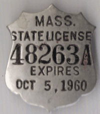 ![]() MASS MOTOR VEHICLE INSPECTOR DEPT. PUBLIC SAFETY | ![]() MASS REGISTRY OF MOTOR VEHICLES ENFORCEMENT AGENT DIVISION OF MOTOR BOATS |