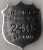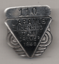 ![]() LARAMIE, WYOMING LICENSED CHAUFFEUR | ![]() WYOMING LICENSED TAXI DRIVER | ![]() 1950 LARAMIE, WYOMING LICENSED TAXI DRIVER |