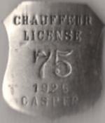 ![]() CHAUFFEUR | ![]() 1923 CASPER, WYOMING LICENSED CHAUFFEUR | ![]() 1924 CASPER, WYOMING CHAUFFEUR LICENSE |