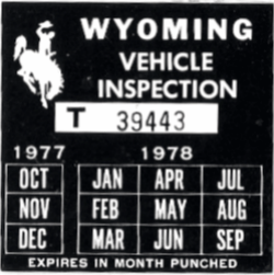 ![]() 1977/78 WYOMING VEHICLE INSPECTION | ![]() 1977/78 WYOMING VEHICLE INSPECTION |