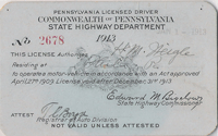 ![]() 1913 PENNSYLVANIA LICENSED DRIVER | ![]() 1914 PENNSYLVANIA LICENSED DRIVER |