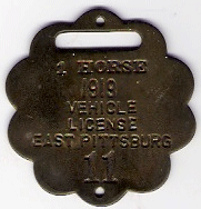 E. PITTSBURGH, PENNSYLVANIA 1906 2 HORSE DELIVERY | 1919 EAST PITTSBURGH, PENNSYLVANIA I HORSE VEHICLE LICENSE |