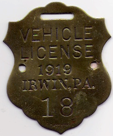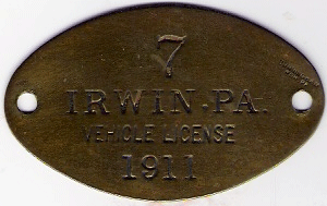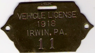 1911 IRWIN, PENNSYLVANIA VEHICLE LICENSE | 1915 IRWIN, PENNSYLVANIA VEHICLE LICENSE | 1919 IRWIN, PENNSYLVANIA VEHICLE LICENSE | |