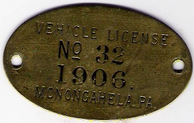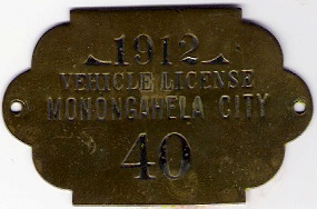| MONONGAHELIA, PENNSYLVANIA 1912 VEHICLE LICENSE | MONONGAHELIA, PENNSYLVANIA 1913 VEHICLE LICENSE | |