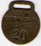 ![]() WILKINSBURG, PENNSYLVANIA 1906 2 HORSE | ![]() WILLIAMSPORT, PENNSYLVANIA LICENSED | ![]() 1910 WILLIAMSPORT, PENNSYLVANIA AUTO-LIVERY LICENSE |