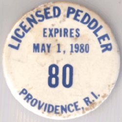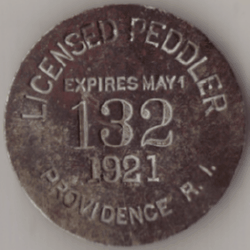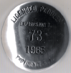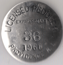 ![]() EAST PROVIDENCE, R. I. 1942 LICENSED PEDDLER | ![]() EAST PROVIDENCE, R. I. 1967 LICENSED PEDDLER |