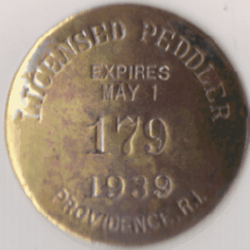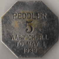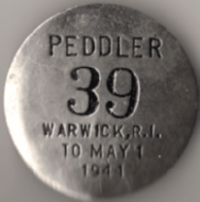 ![]() WARWICK, R. I. LICENSED PEDDLER | ![]() WARWICK, R. I. 1938/39 PEDDLER |
