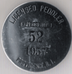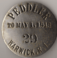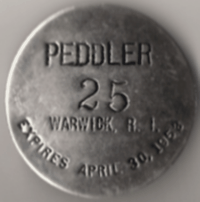 ![]() WARWICK, R. I. 1952/53 PEDDLER | ![]() WEST WARWICK, R. I. LICENSED PEDDLER |