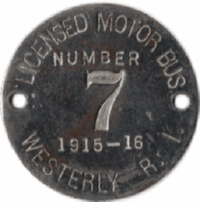 ![]() 1915-16 WESTERLY, R. I. LICENSED MOTOR BUS | ![]() 1916/17 WESTERLY, R. I. MOTOR BUS LICENSED CHAUFFEUR |