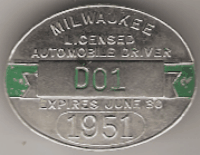 MILWAUKEE, WISCONSIN 1950/51 LICENSED AUTOMOBILE DRIVER