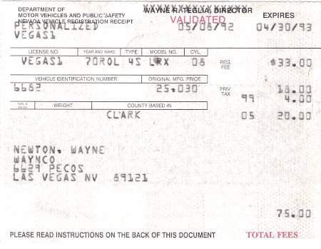 ![]() | WAYNE NEWTON PERSONALIZED LICENSE PLATE "VEGAS 1" 1970 ROLLS |