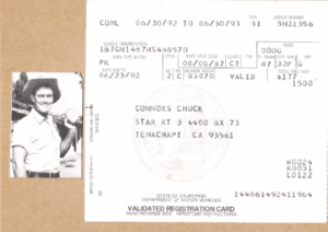 ![]() | CHUCK CONNORS 1992 REGISTRATION FOR A DODGE |