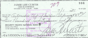 ![]() | JAMIE LEE CURTIS 1981 CHECK TO AUTOMOBILE CLUB OF SO. CALIFORNIA |