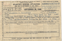 ![]() 1943 OPERATOR'S RENEWAL APPLICATION | ![]() REVERSE OF RENEWAL APPLICATION |