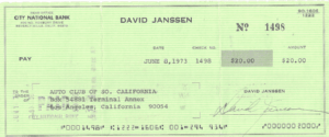 ![]() | DAVID JANSSEN 1973 CHECK TO AUTO CLUB OF SO. CALIFORNIA |