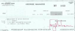 ![]() | GEORGE MAHARIS 1978 CHECK TO DEPT. OF MOTOR VEHICLES |