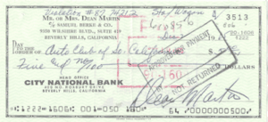 ![]() | DEAN MARTIN 1965 CHECK TO AUTO CLUB OF SO. CALIFORNIA |