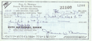 ![]() | PAUL NEWMAN/JOANNE WOODWARD 1974 CHECK TO CONN. DEPT. OF MOTOR VEHICLES |