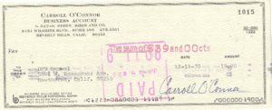 ![]() ![]() | CARROLL O'CONNOR 1973 CHECK TO DMV 1978 CHECK TO HARRAH'S AUTOMOBILE COLLECTION |