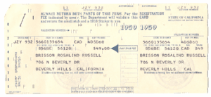 ![]() | ROSALIND "BRISSOM"RUSSELL 1959 CALIFORNIA CADILLAC REGISTRATION |