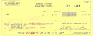 ![]() | BOBBY VINTON 1973 CHECK TO AUTOMOBILE CLUB OF SO. CALIFORNIA |