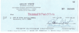 ![]() | ADAM WEST 1980 CHECK TO DEPT OF MOTOR VEHICLES |