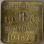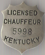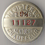 KENTUCKY CHAUFFEUR BADGES WERE USED FROM 1915?-1963. THE INFORMATION IS NOT CLEAR AS TO WHEN THE UNDATED BADGES STARTED. TO MAKE MATTERS MORE CONFUSING, THERE ARE NUMEROUS SETS. CHAUFFEUR BADGES WERE USED UNTIL 1936. DRIVER BADGES WERE USED FROM 1930-1963. THE 1962 BADGE IS TITLED "CHAUFFEUR"? I HAVE 1926 AND 1928 BUS DRIVER'S BADGES, AND 1929 CAB DRIVER. THEY MAY HAVE BEEN THE START OF THE DRIVER BADGE SERIES. THE PHOTO IS OF THE KY. AUTO WRECKING & PARTS CO.