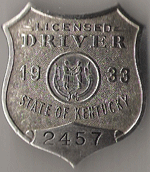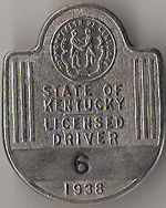 1936 KENTUCKY LICENSED DRIVER | 1937 KENTUCKY LICENSED DRIVER | 1938 KENTUCKY LICENSED DRIVER |