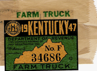1947 KENTUCKY FARM TRUCK REGISTRATION CERTIFICATE MATCHES WINDSHIELD STICKER #34686 | 1947 KENTUCKY FARM TRUCK WITH ORIGINAL ENVELOPE MATCHES REGISTRATION CERTIFICATE |