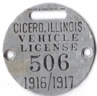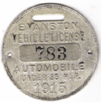 ![]() 1909 2 HORSE LICENSE | ![]() 1910 1 HORSE LICENSE | ![]() 1912 AUTOMOBILE LICENSE |