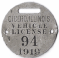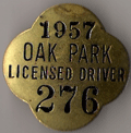 ![]() 1914 ONE HORSE VEHICLE LICENSE | ![]() 1915 AUTOMOBILE LICENSE | ![]() 1952 LICENSED DRIVER |