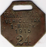 ![]() 1915 1-HORSE VEHICLE TAX | ||