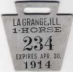 ![]() 1914 ONE HORSE VEHICLE LICENSE | ||